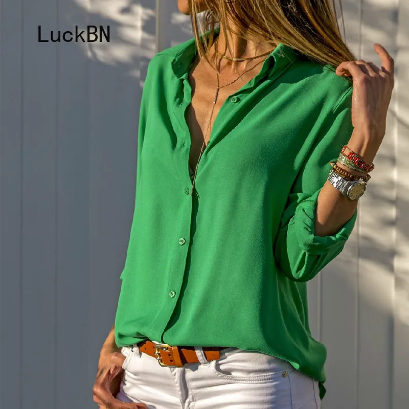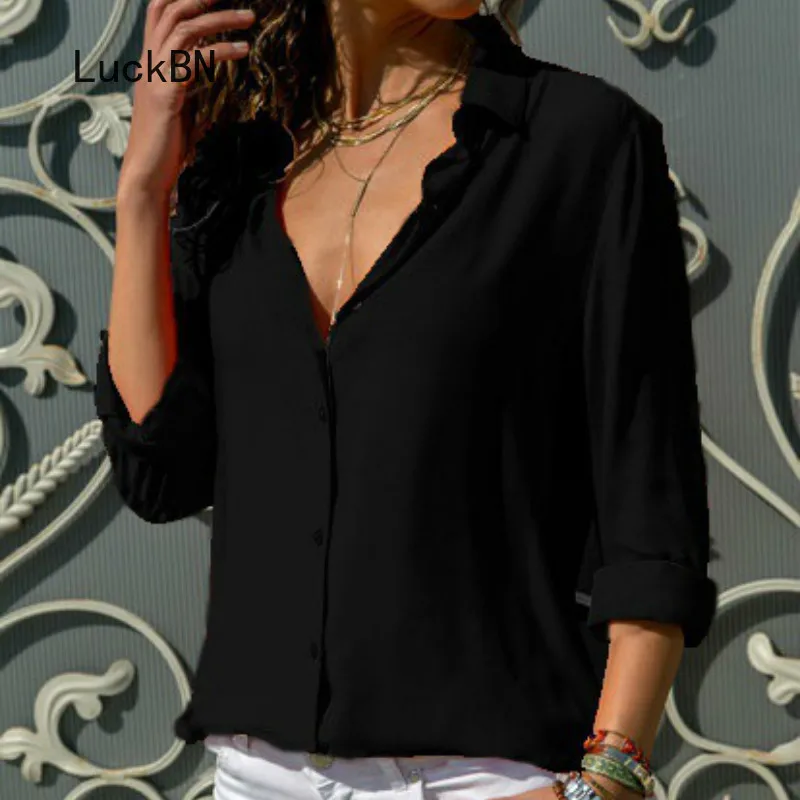awesome Plus Size 8XL 7XL Women Blouses Chiffon Blouse Oversized Long Sleeve Tops Turn Down Collar Solid Of