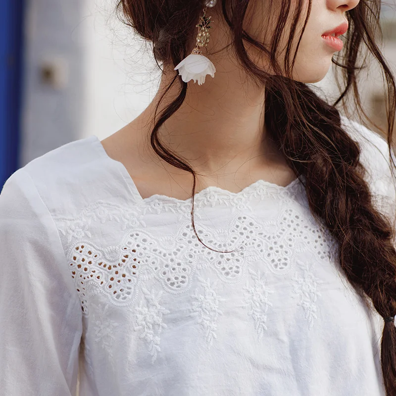INMAN Women's 2019 Summer Florals half sleeve pullover Shirt Tops,INMAN Women Tops and Delicate Embroidered Ladies Blouse Stand Collar Cotton Shirt Long Sleeves White Bottoming Shirt, INMAN Women Tops and Delicate Embroidered Ladies Blouse Stand Collar Cotton Shirt Long Sleeves White Bottoming Shirt
