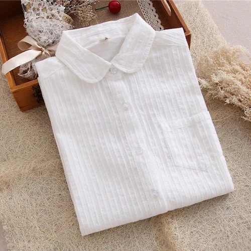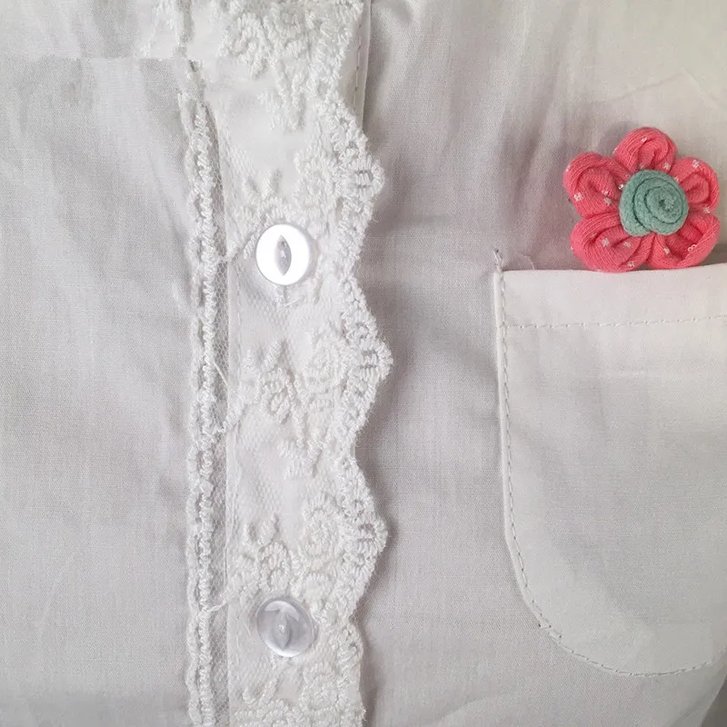 Greatest White Blouse Button Up Lace Crochet Turn Down Collar Long Sleeve Cotton Top Shirt with Pocket Size