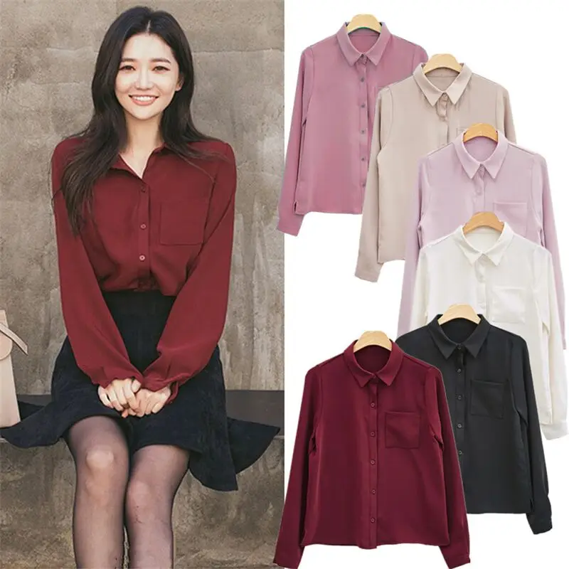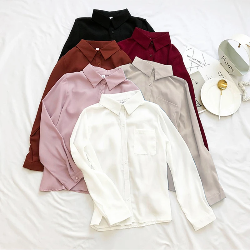 incredible Women Blouses Shirt Long Sleeve Casual Chiffon Turn-down Collar Solid Women Tops Korean Vogue Shirt