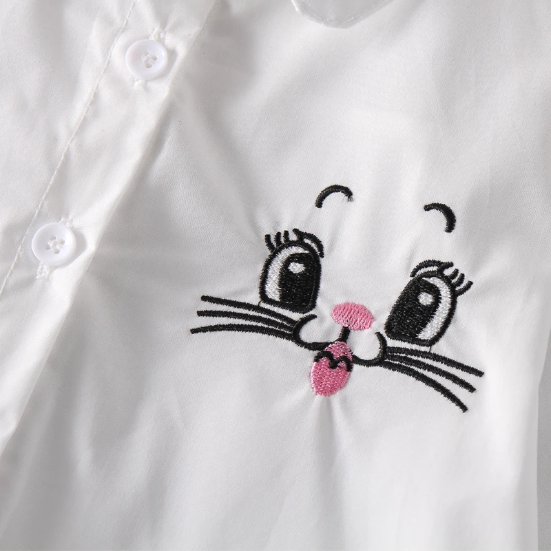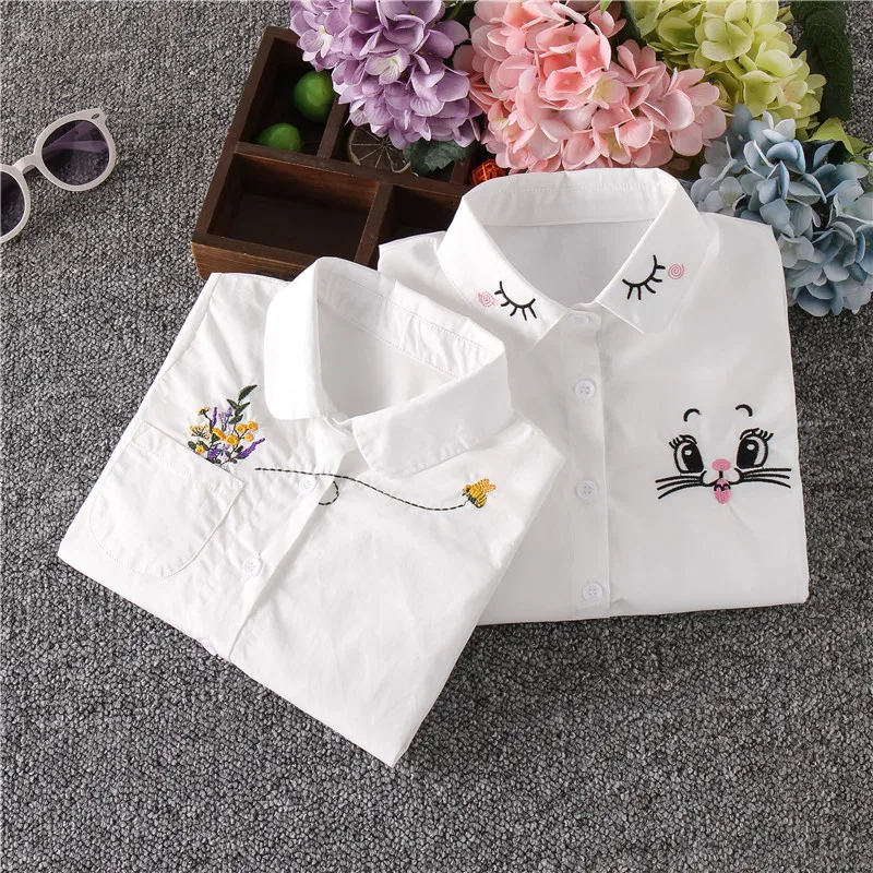 Most effective New Arrival Girls White Blouse Fall Cute Long Sleeves Children Cartoon Shirts Girl Blouses Cat Teen