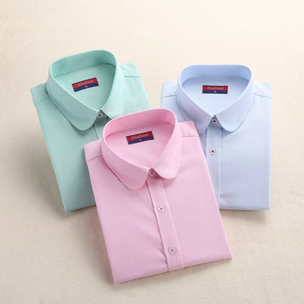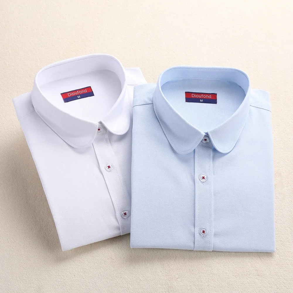 lower price Dioufond White Women Blouse Solid Long Sleeve School Shirt Work Plus size Female Blusas Cotton Blue