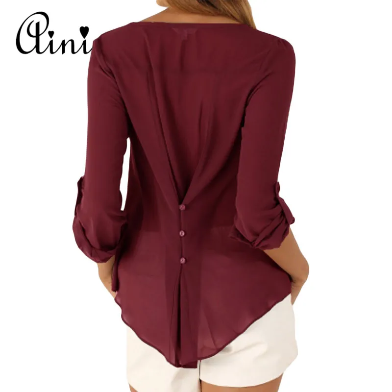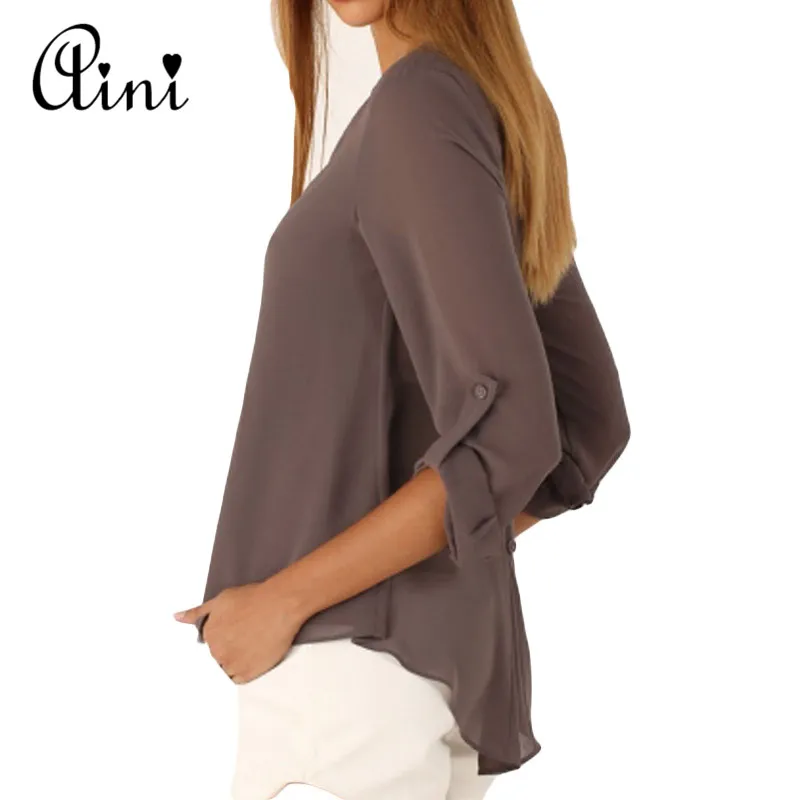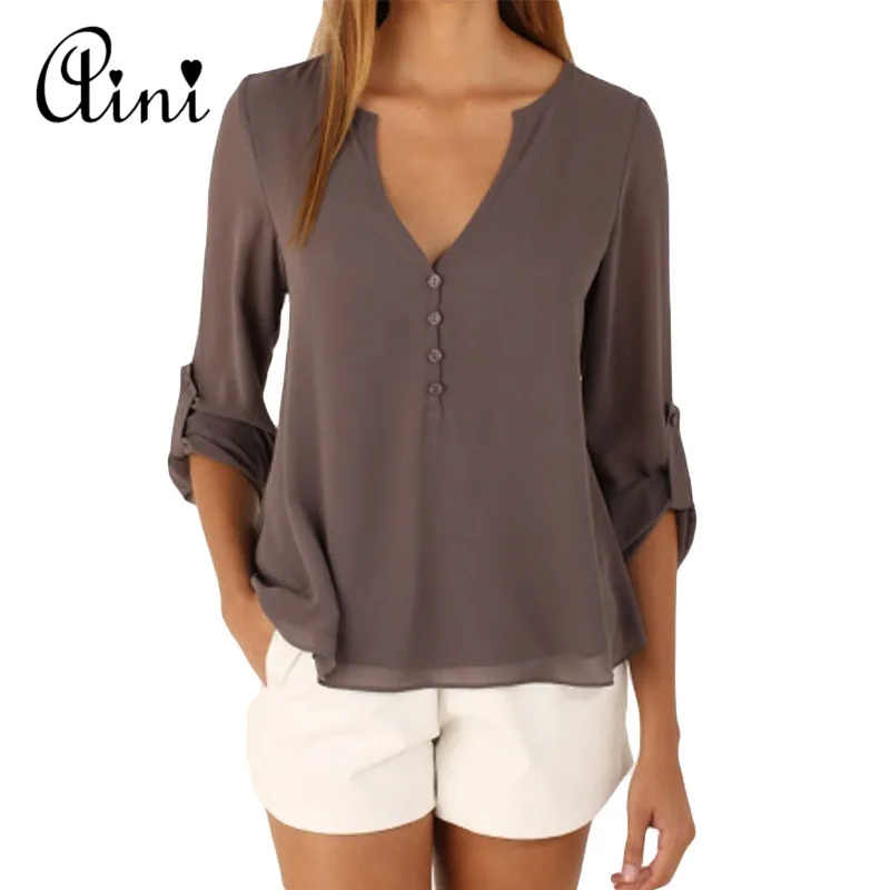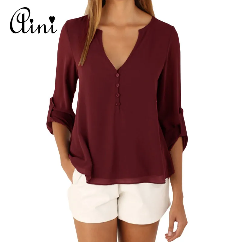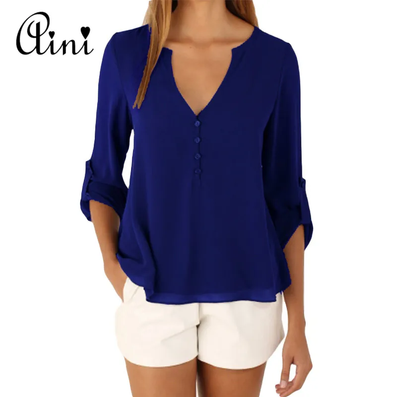 price cut Plus Size 5XL Women Tops and Blouse Long Sleeve Solid V-neck Loose Chiffon Blouses 2019 Summer Top