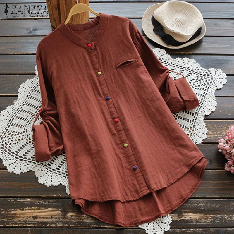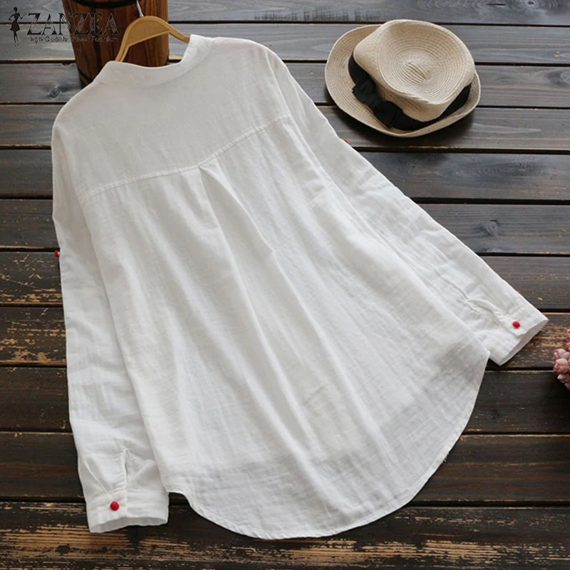 awesome 2019 ZANZEA Women Casual Long Sleeve Buttons Cotton Linen Blouse Vintage Autumn Solid Shirt Loose W