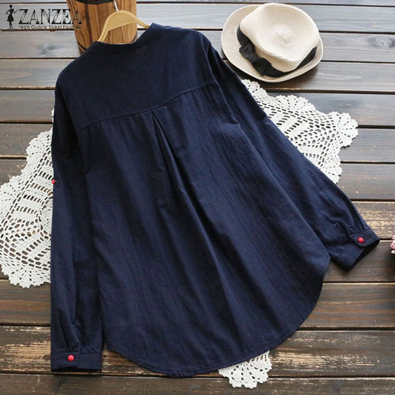 Promo 2019 ZANZEA Women Casual Long Sleeve Buttons Cotton Linen Blouse Vintage Autumn Solid Shirt Loose W