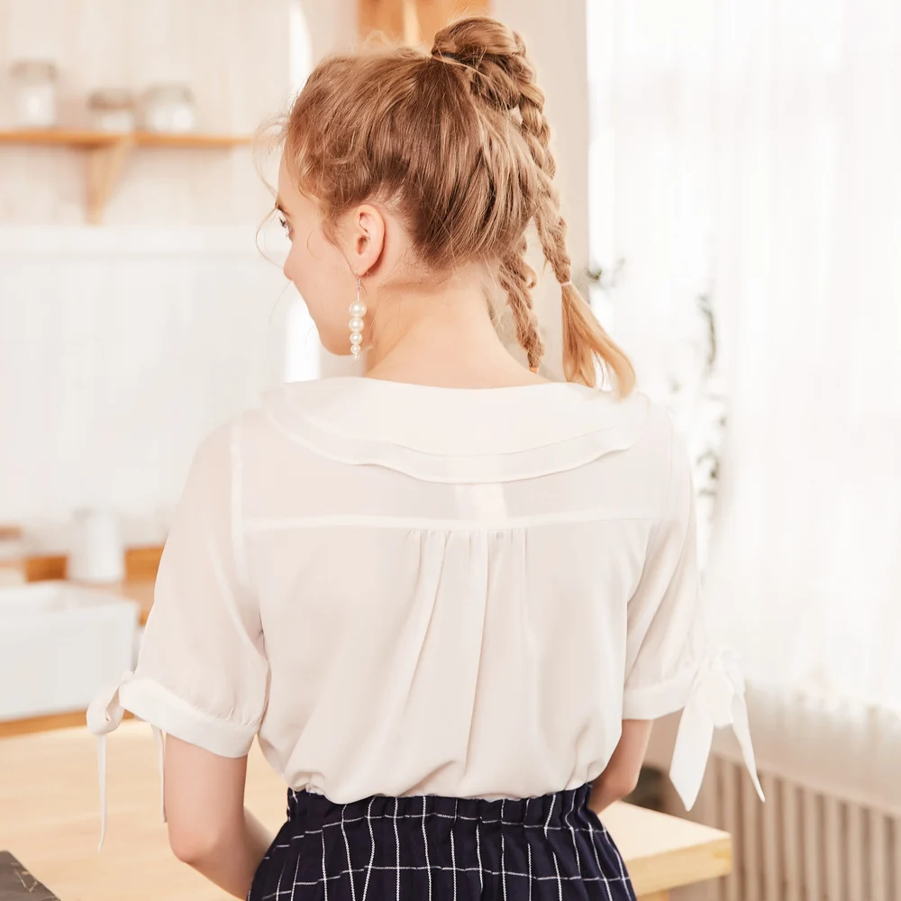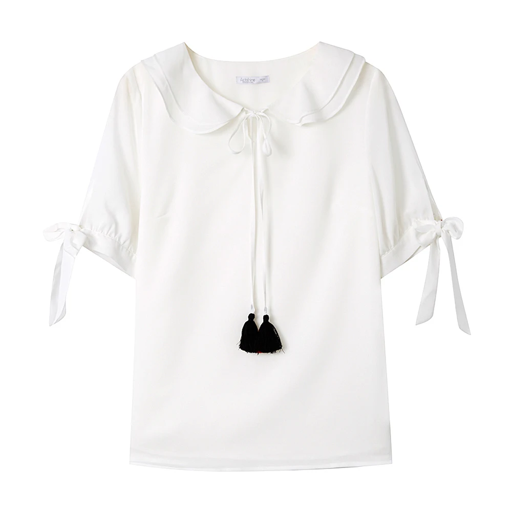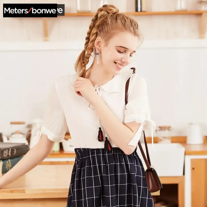 Finest METERSBONWE Short Sleeve Shirt Blouse Women Lovely Doll Collar Chiffon Shirt Five Sleeve Shirt Summ