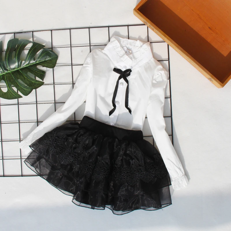 remarkable New Spring 2019 Girls School Shirts Cotton Turtleneck Long Sleeve White Blouse Fashion Classic Chil