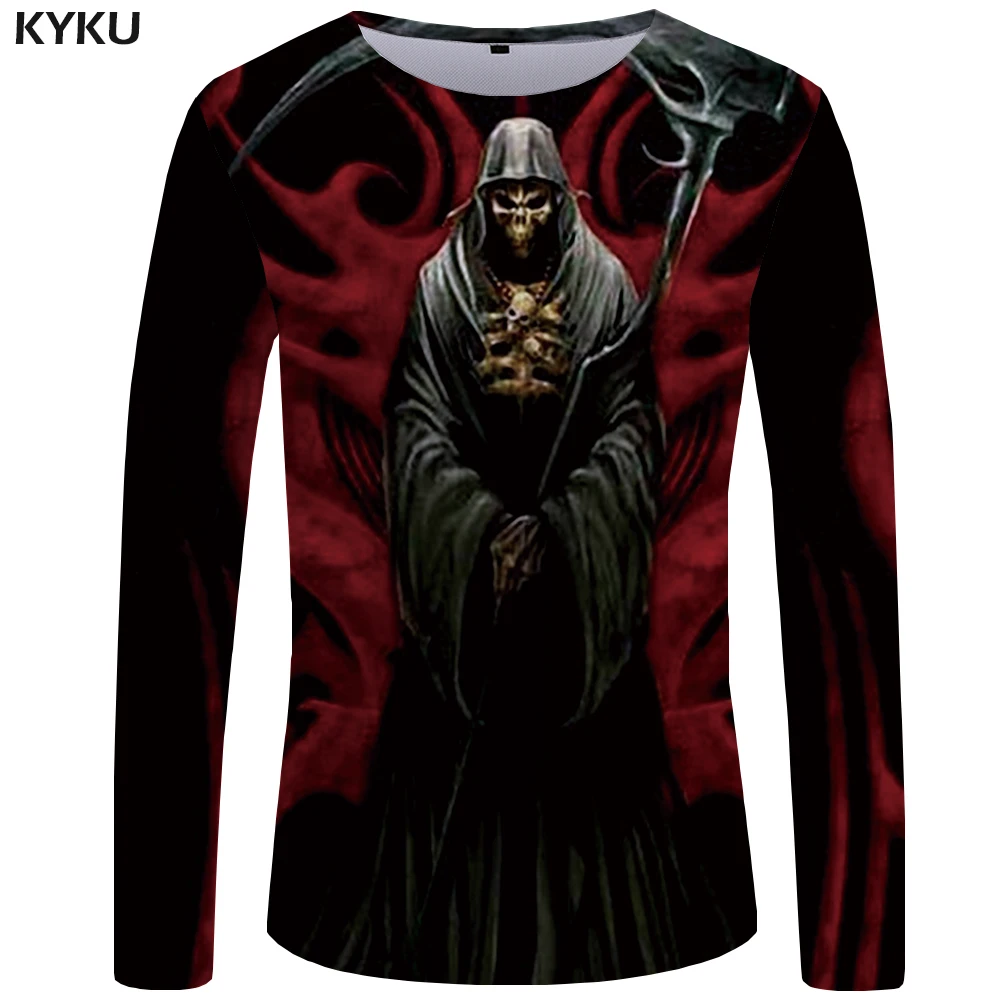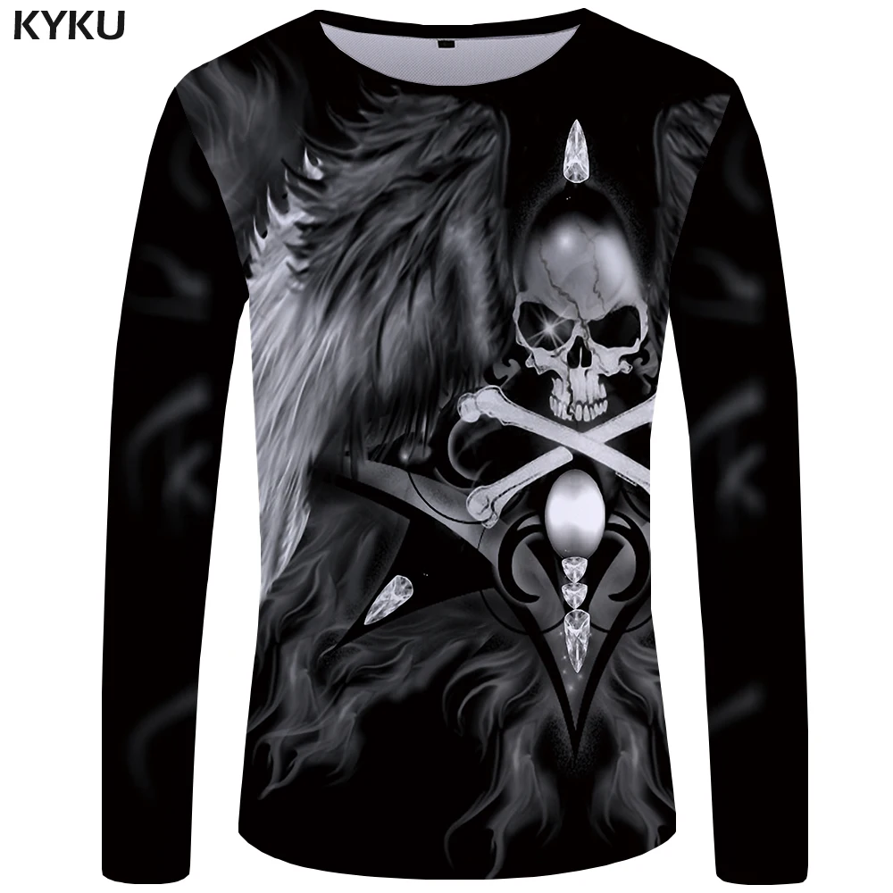 amazing KYKU Skull Long Sleeve T Shirt Women Wing T-shirt Punk Rock Clothes 3d Printed Tshirt Hip Hop Women
