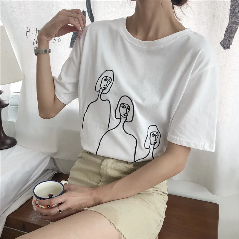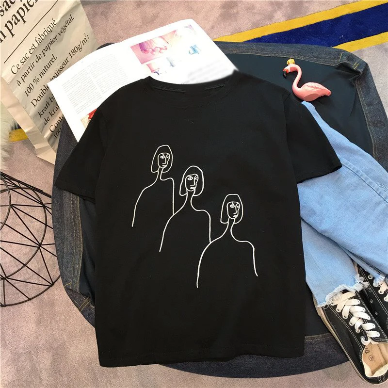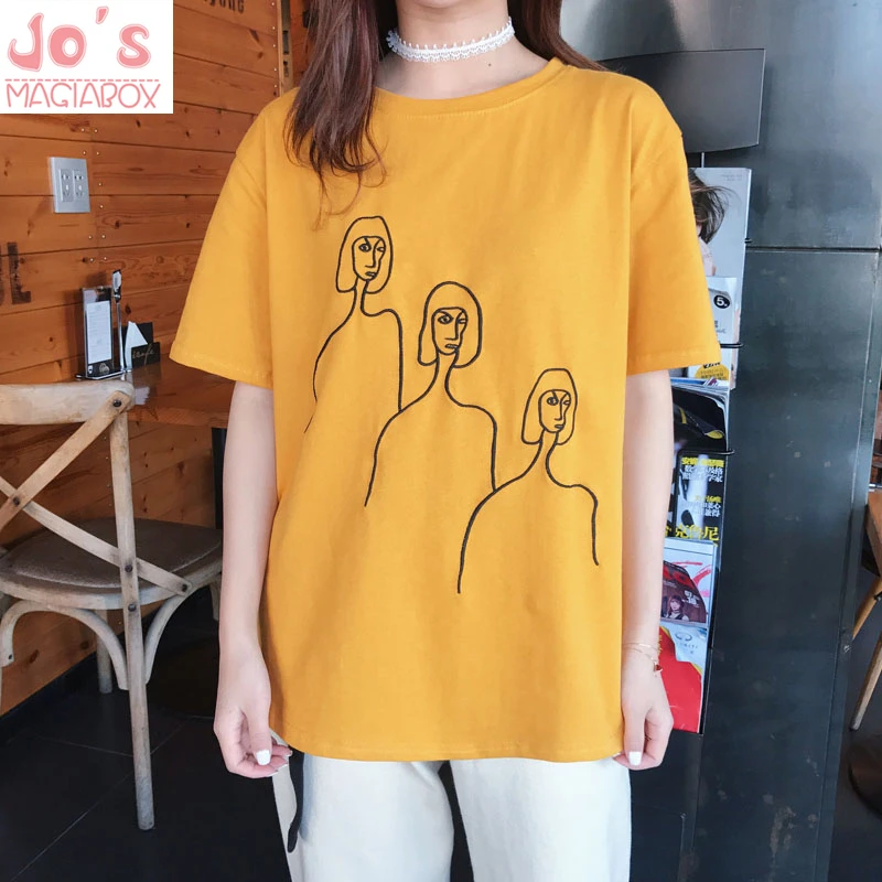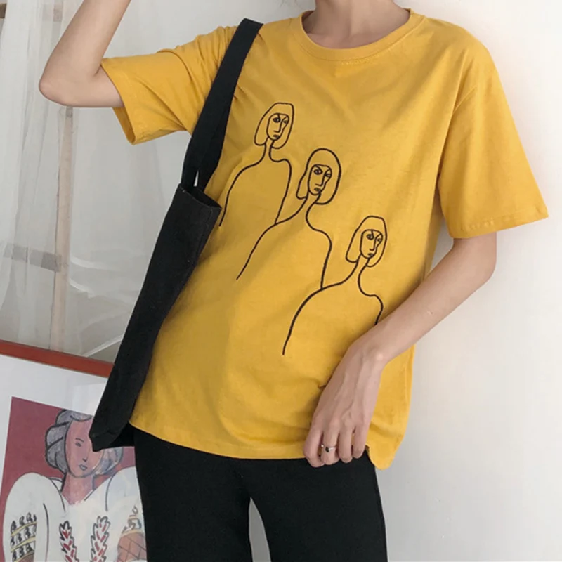 astounding Womens Black White Yellow Printed Tshirt Hip Hop Oversized Casual T Shirt Women Harajuku Cotton Bas