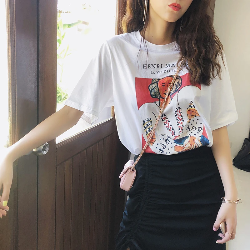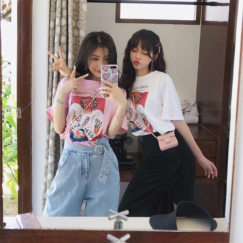 incredible Mishow 2019 Summer Women T-shirt Short Sleeve Harajuku Cartoon tshirts O-neck Cotton Women Loose ko