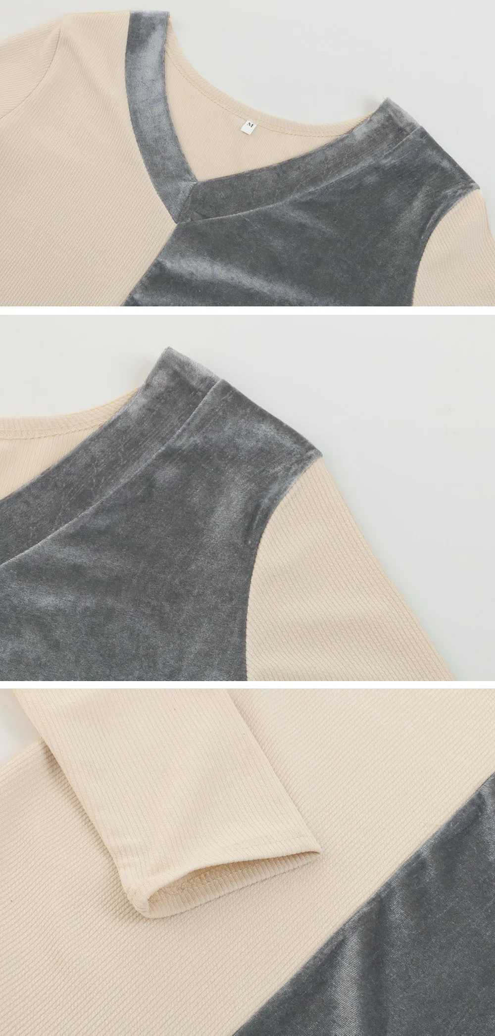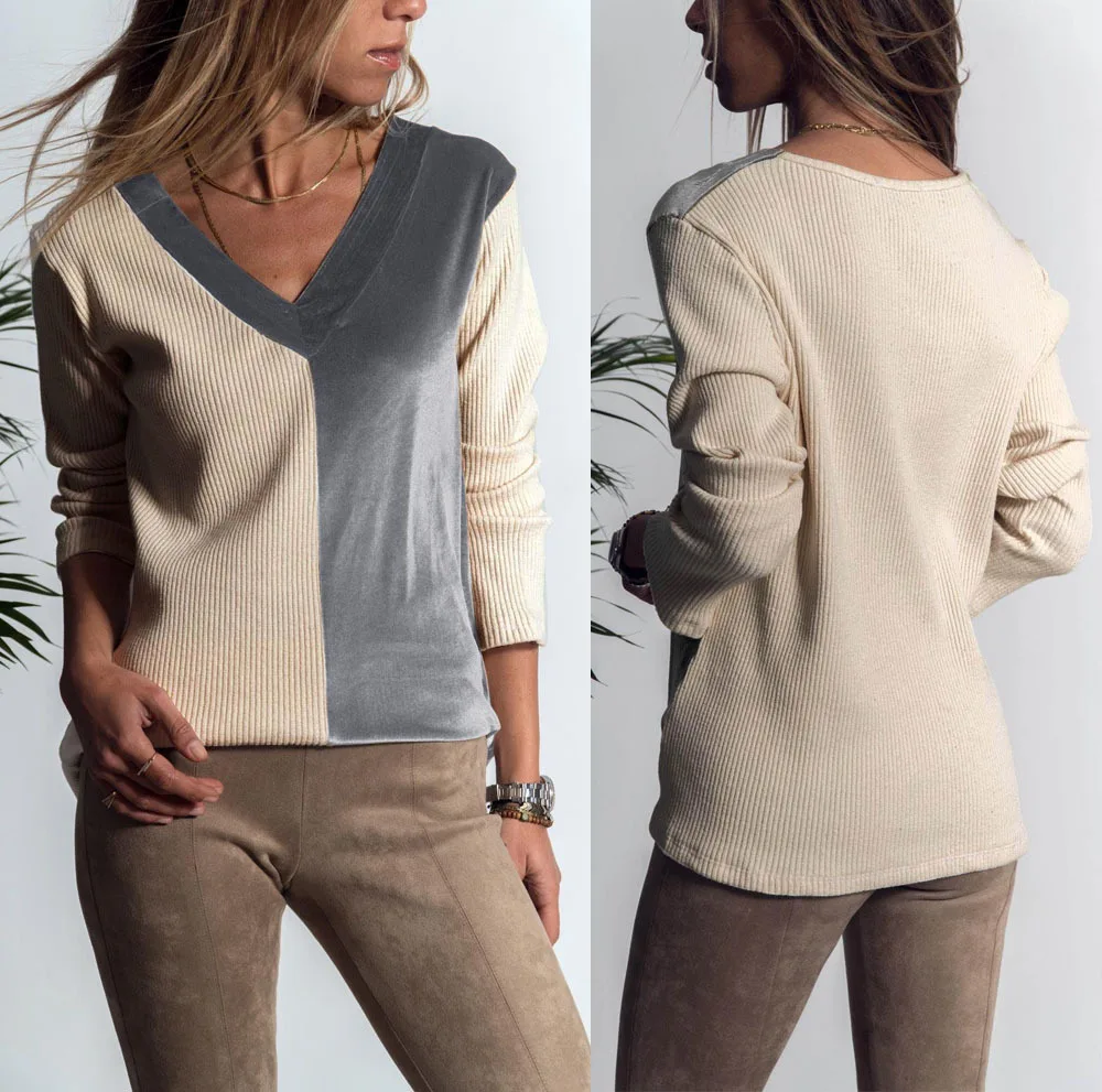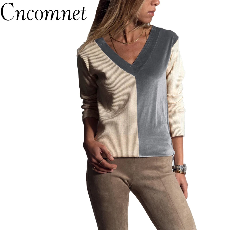 Best 2018 Top T Shirt Women Casual Knitted Full Sleeve Tops Sexy V-neck Featuring Color Matching Comfort
