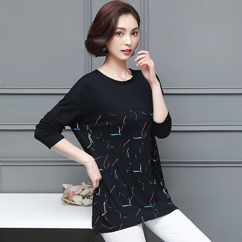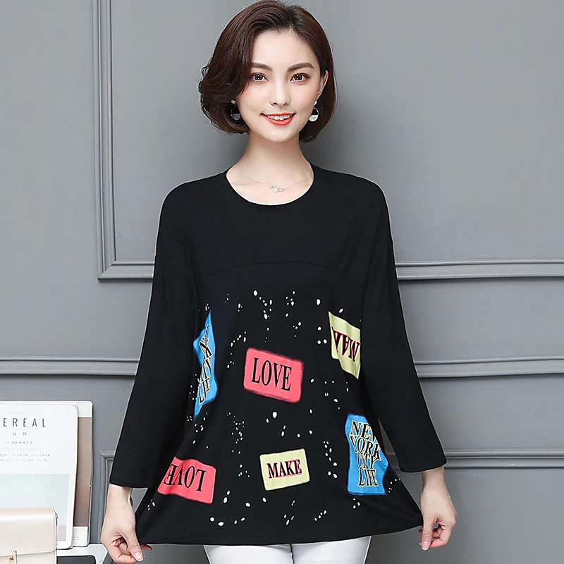 Best Nkandby Plus size O-neck Tops 2018 Autumn Korean Women Casual Loose Batwing sleeve Large Tshirt Bla