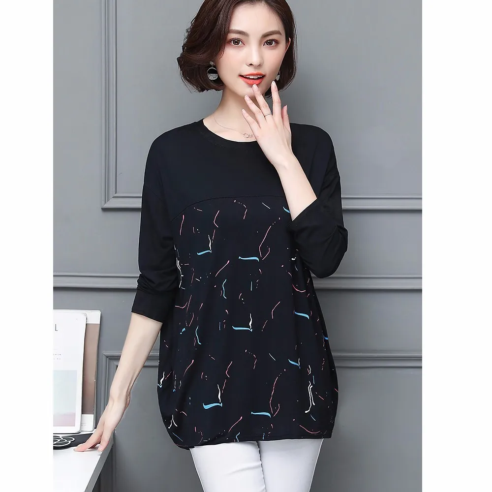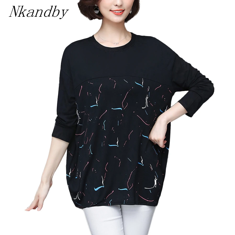 discount Nkandby Plus size O-neck Tops 2018 Autumn Korean Women Casual Loose Batwing sleeve Large Tshirt Bla