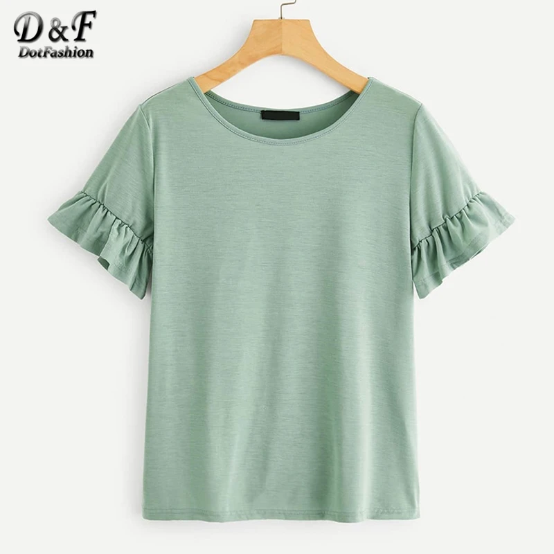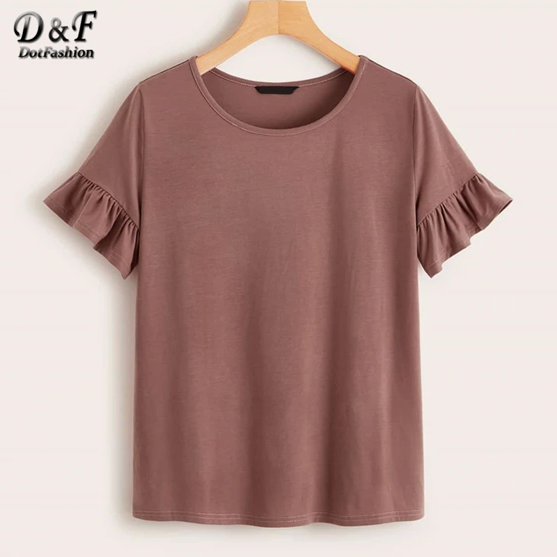 Finest Dotfashion Grey Ruffle Frilled Sleeve Solid Tee Women Casual 2019 Summer Kawaii Tops Short Sleeve K