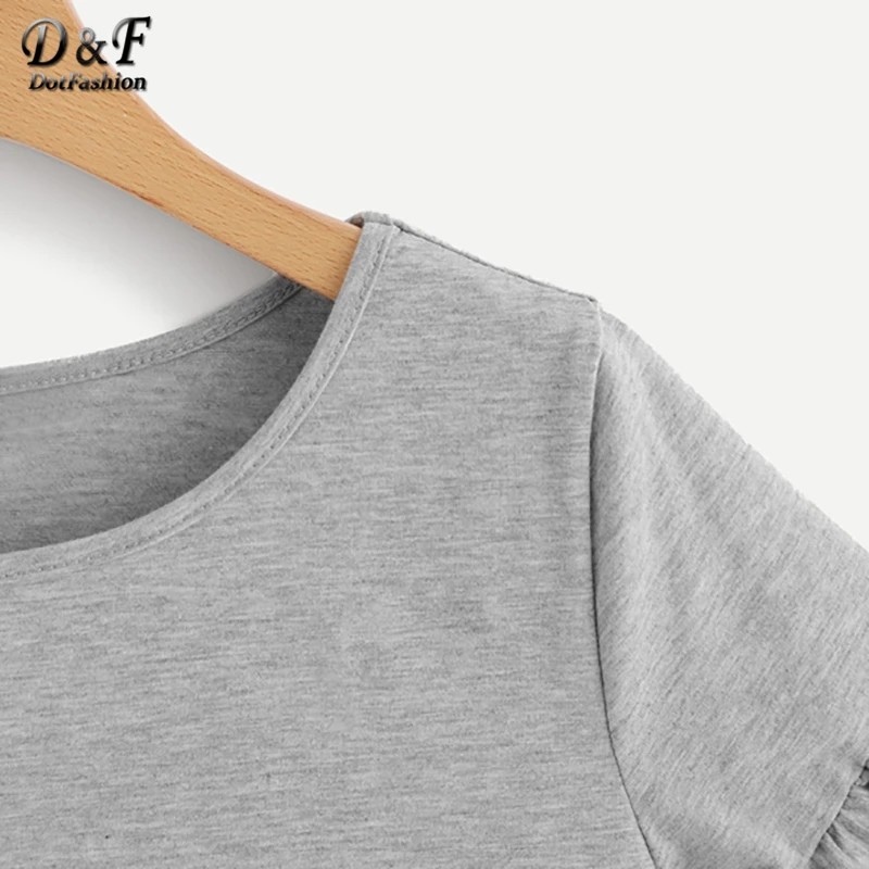 Very best Dotfashion Grey Ruffle Frilled Sleeve Solid Tee Women Casual 2019 Summer Kawaii Tops Short Sleeve K