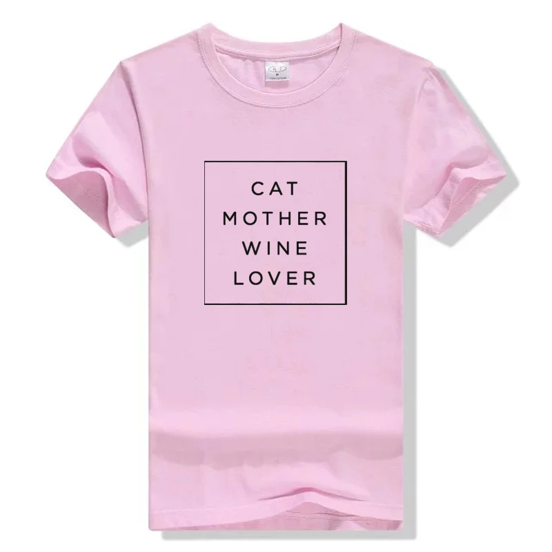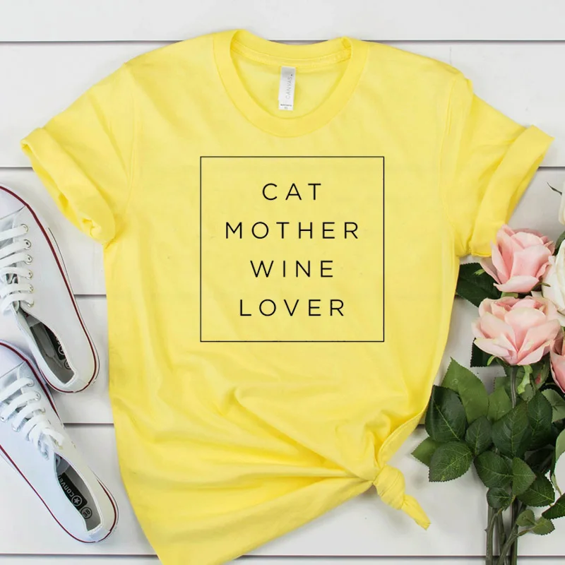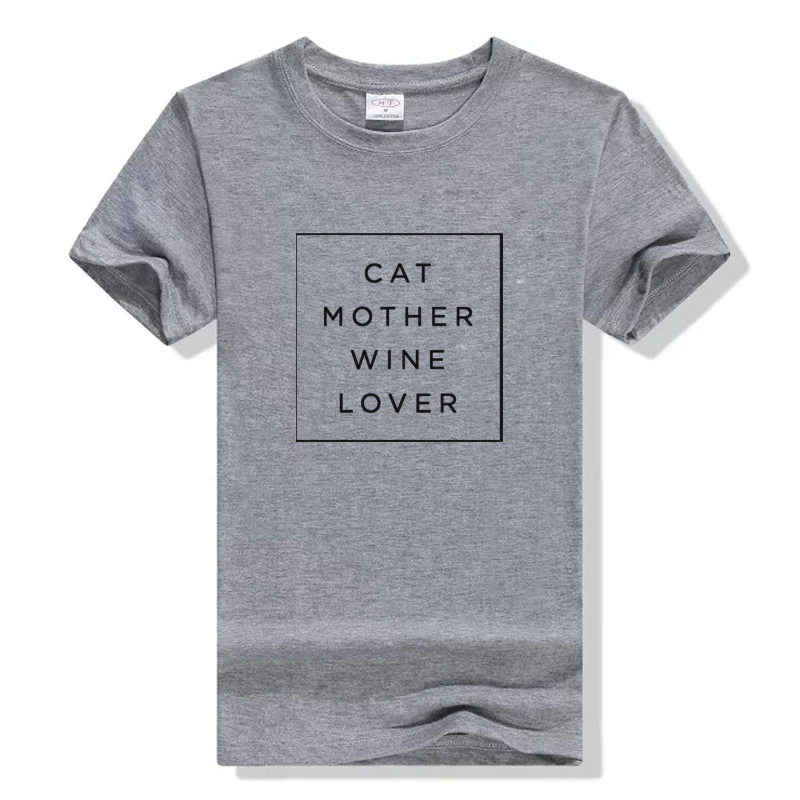New Cat Mother Wine Lover T Shirt Funny Graphic Tees Women Clothes Summer Cat Mom Tshirt Fashion Grunge