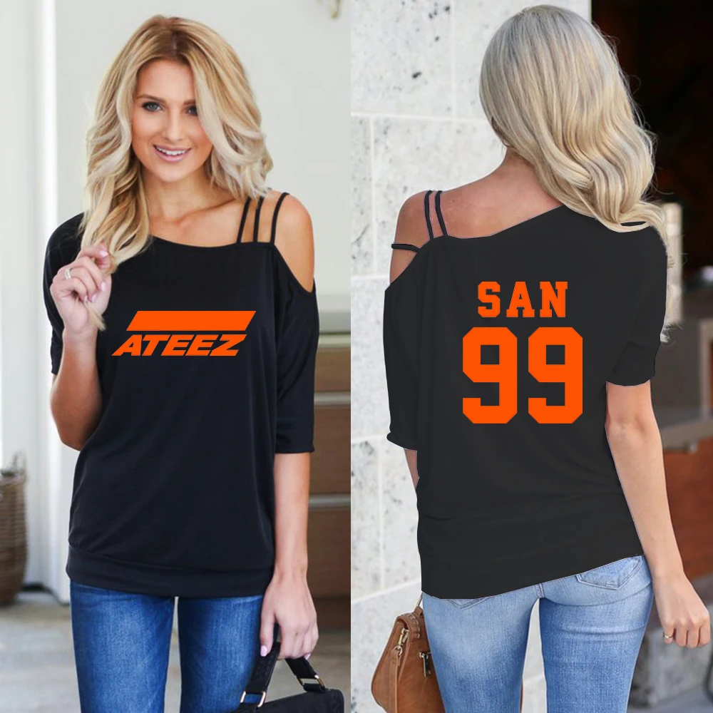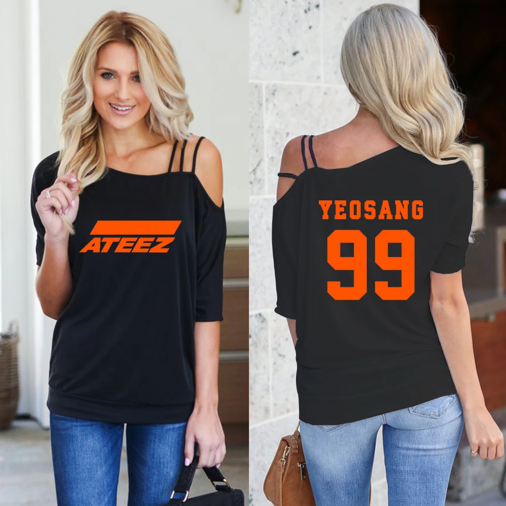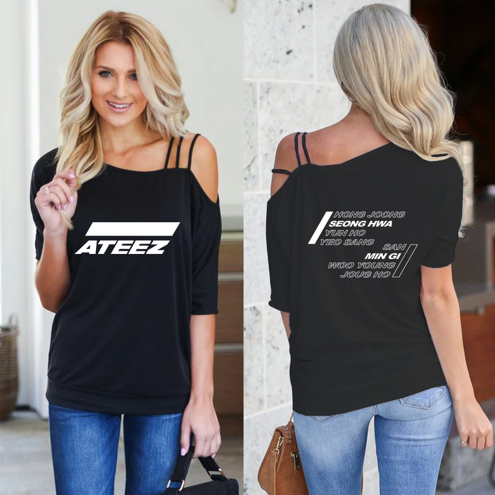 amazing 2019 ATEEZ t shirt women single-shoulder off Summer Short Sleeve sexy ATEEZ tshirt Street fashion h