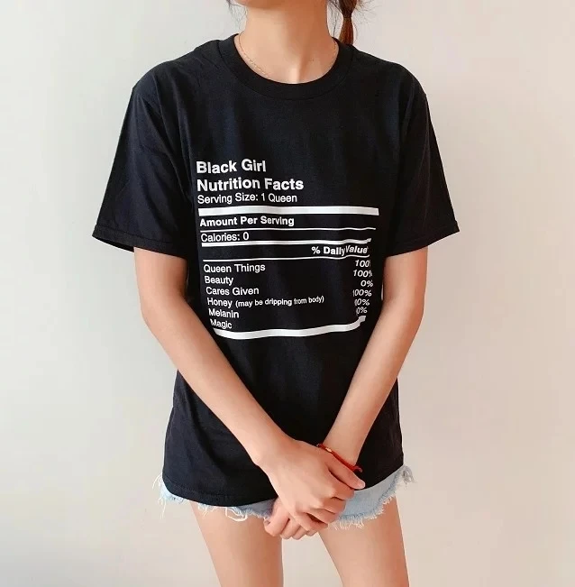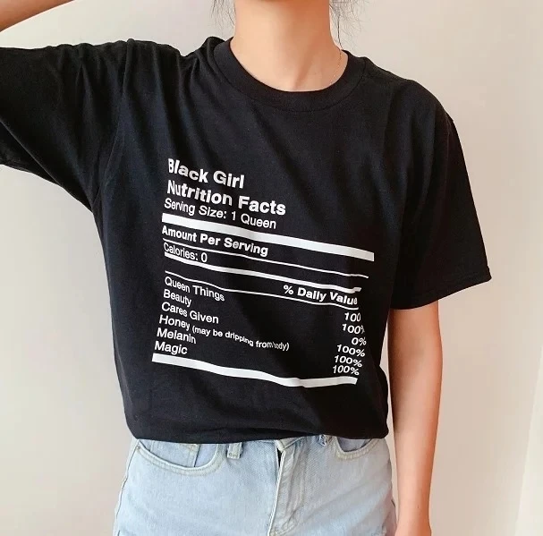 New Black Girl Nutrition Fact Unisex Tees Summer Oversize Screen Print Graphic Cotton Tshirts Human Rig