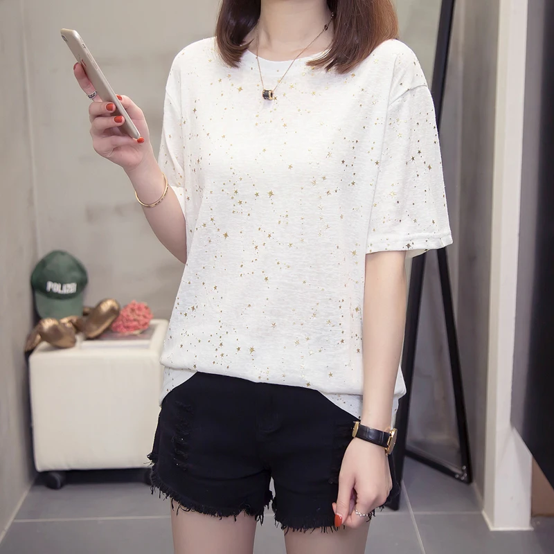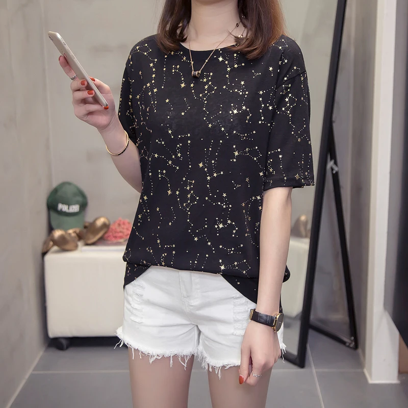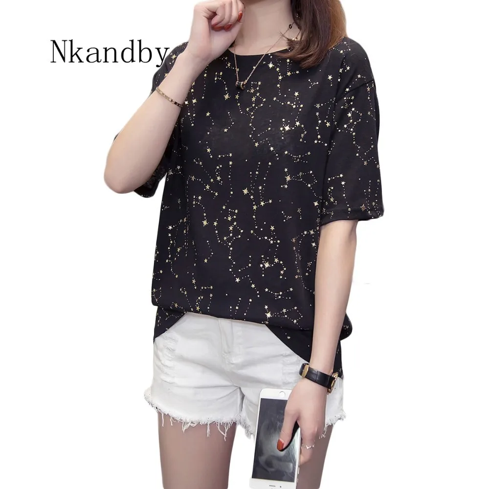 wonderful Nkandby Plus Size Womens T Shirt Tops 2019 Summer Gold Star Woman Tshirt Tops 4XL Oversized Funny S