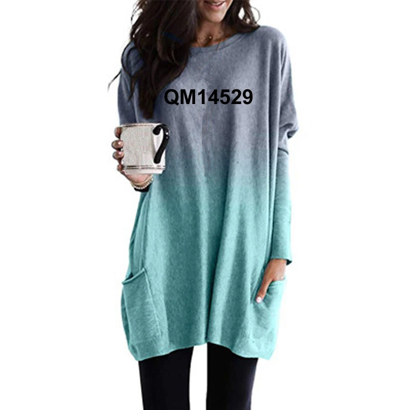 price reduction Fashion Be Still Be Kind Letters Print T-Shirt For Women Gradient Long Sleeve Pocket T-Shirt Tshirt