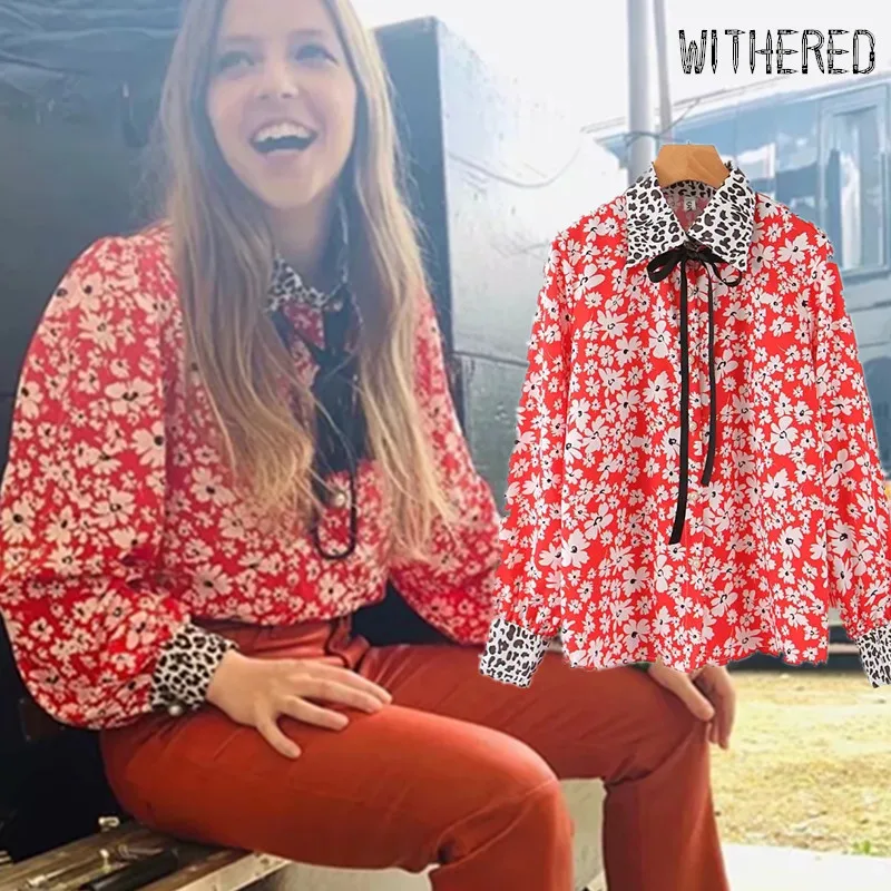 price reduction Withered fashion blogger autumn shirt women patchwork floral print bow blusas mujer de moda 2019 sh