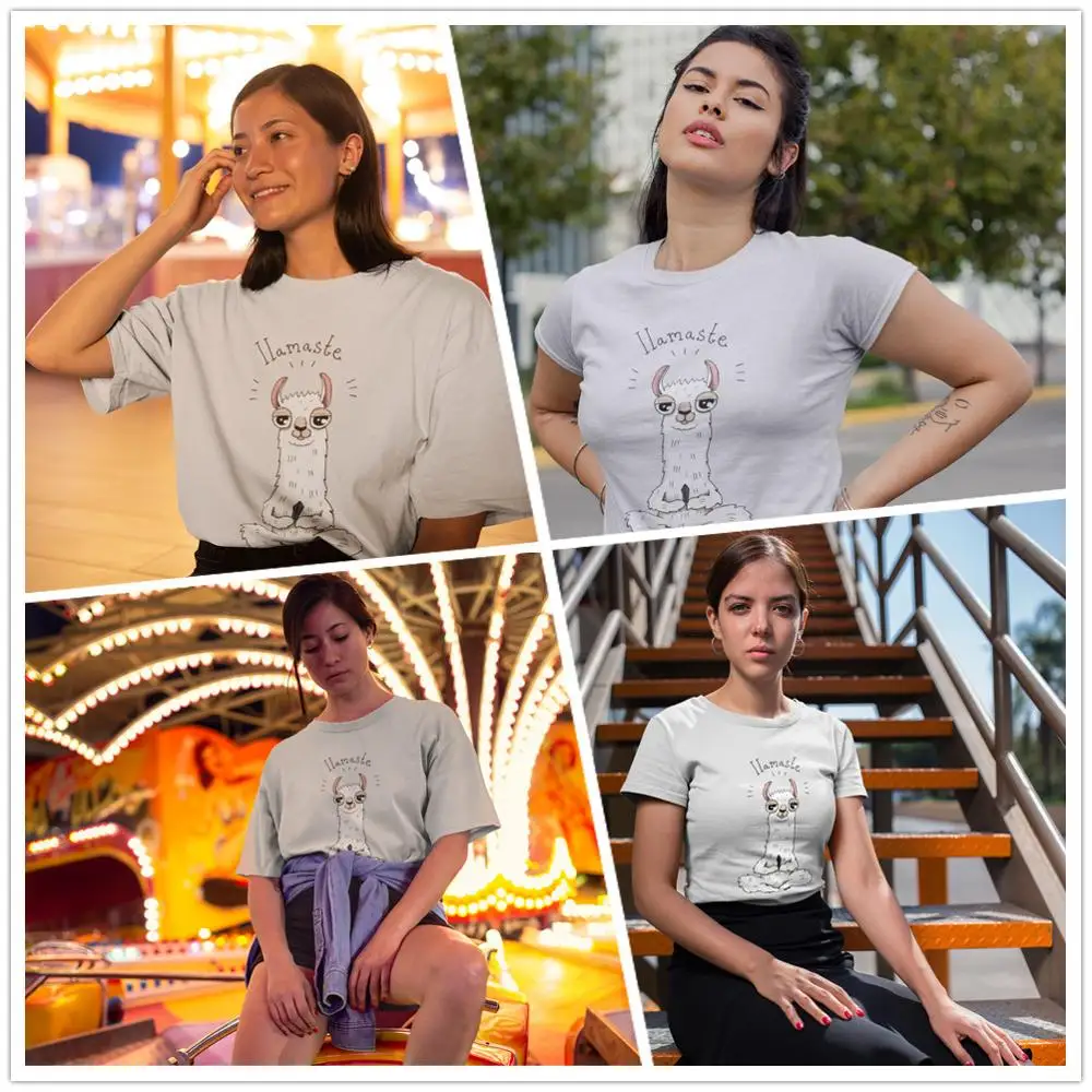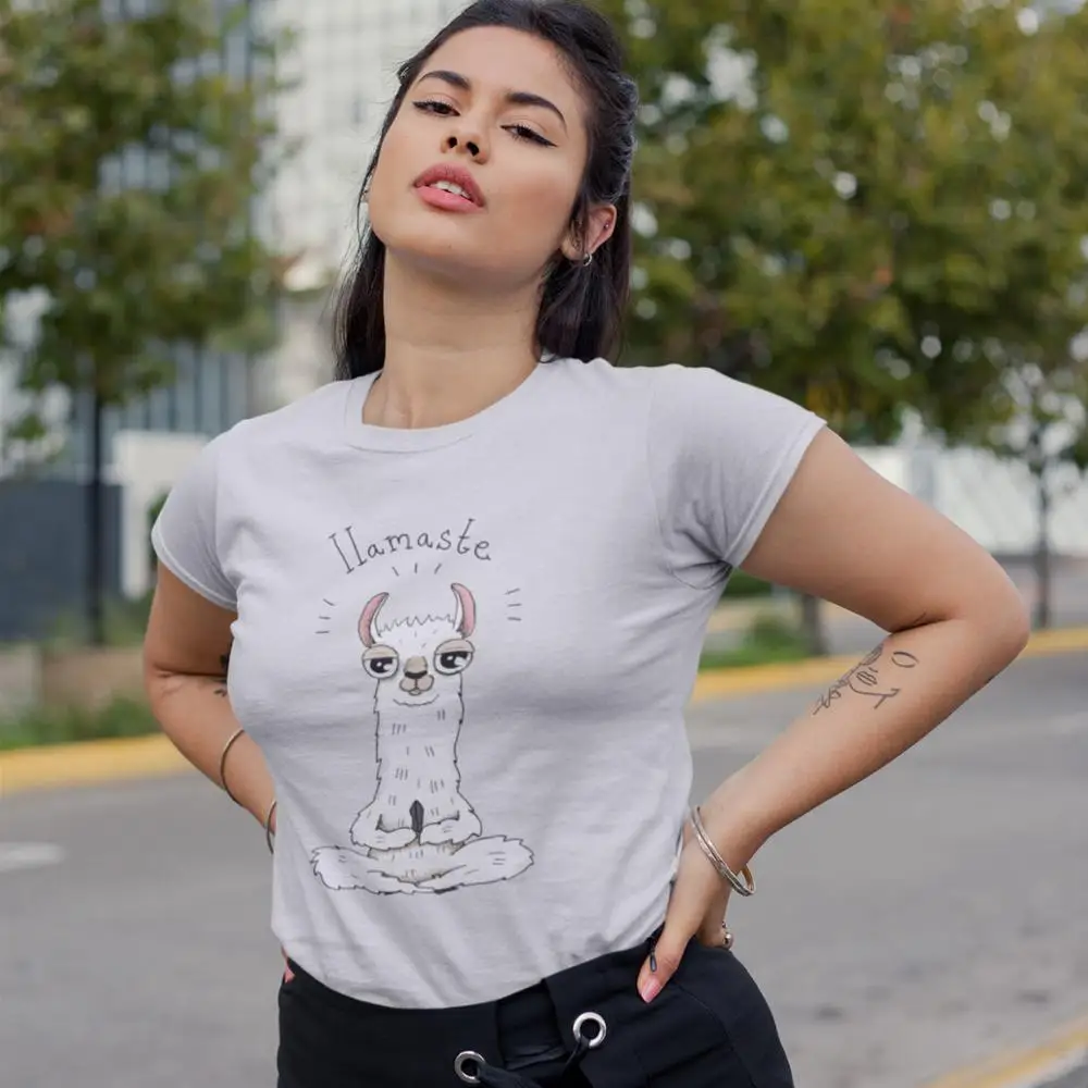 Promo Llama T-Shirt Llamaste T Shirt Cotton Summer Women tshirt White XL Trendy Short Sleeve O Neck Patte