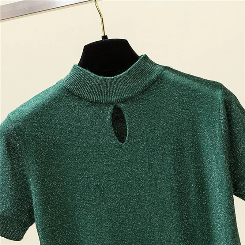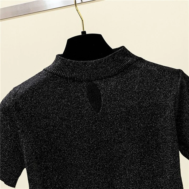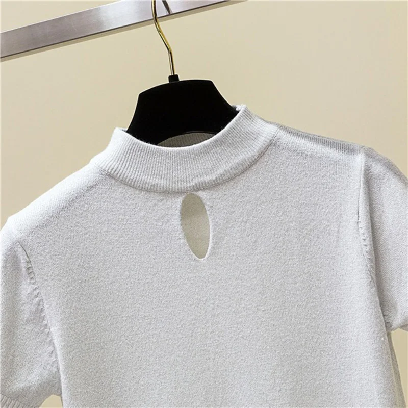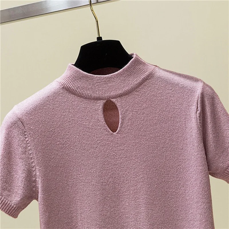 Promo Shintimes 2019 Summer Fashion Harajuku T Shirt Women Knitted Hollow Out Sexy Tops Short Sleeve Turt
