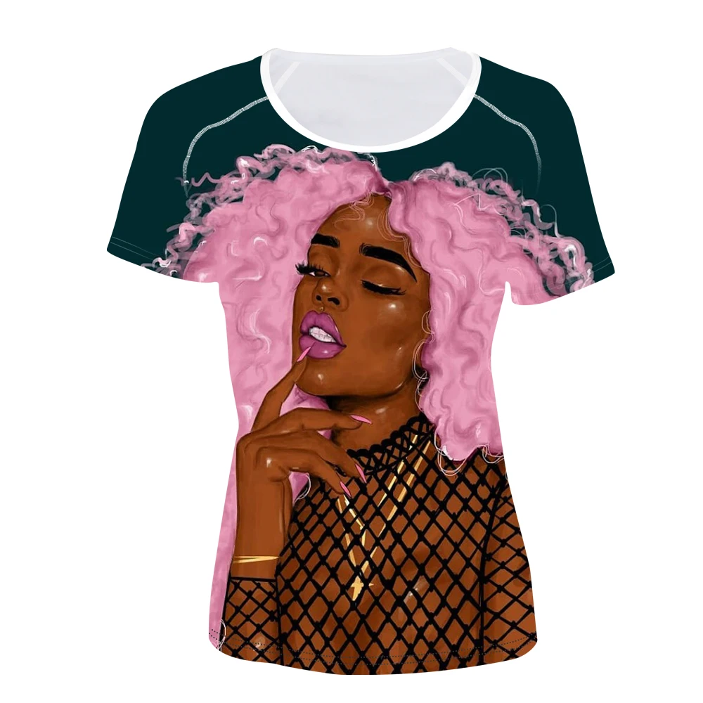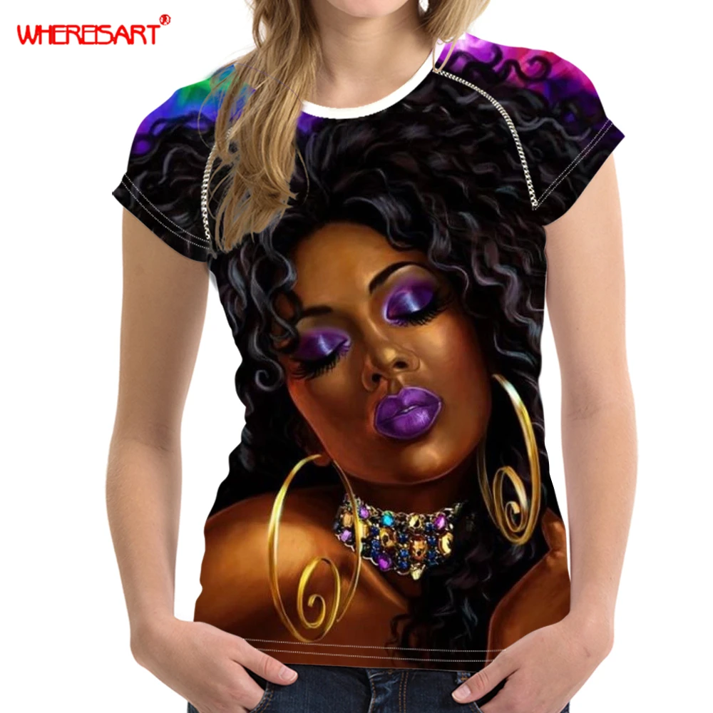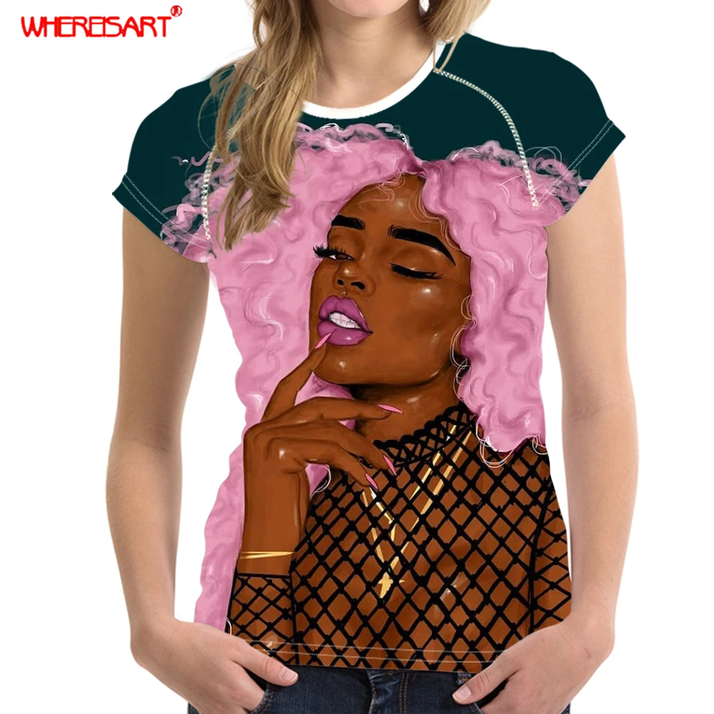 wonderful WHEREISART Melanin Poppin Shirt Vogue T Shirt Women Black African Girl Prints Tshirt Femme Harajuku